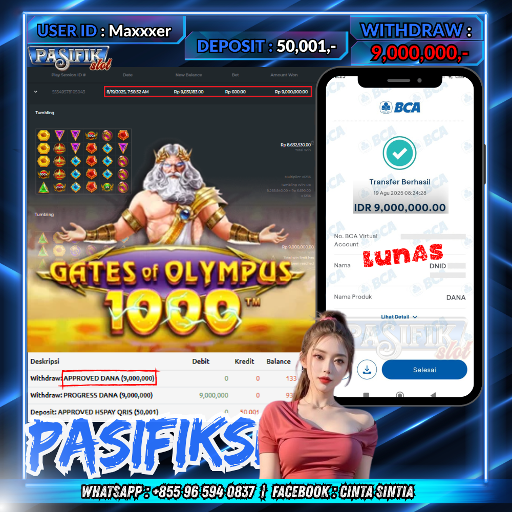 PASIFIKSLOT JACKPOT GATES OF OLYMPUS 1000 Rp.9,000,000,- LUNAS!