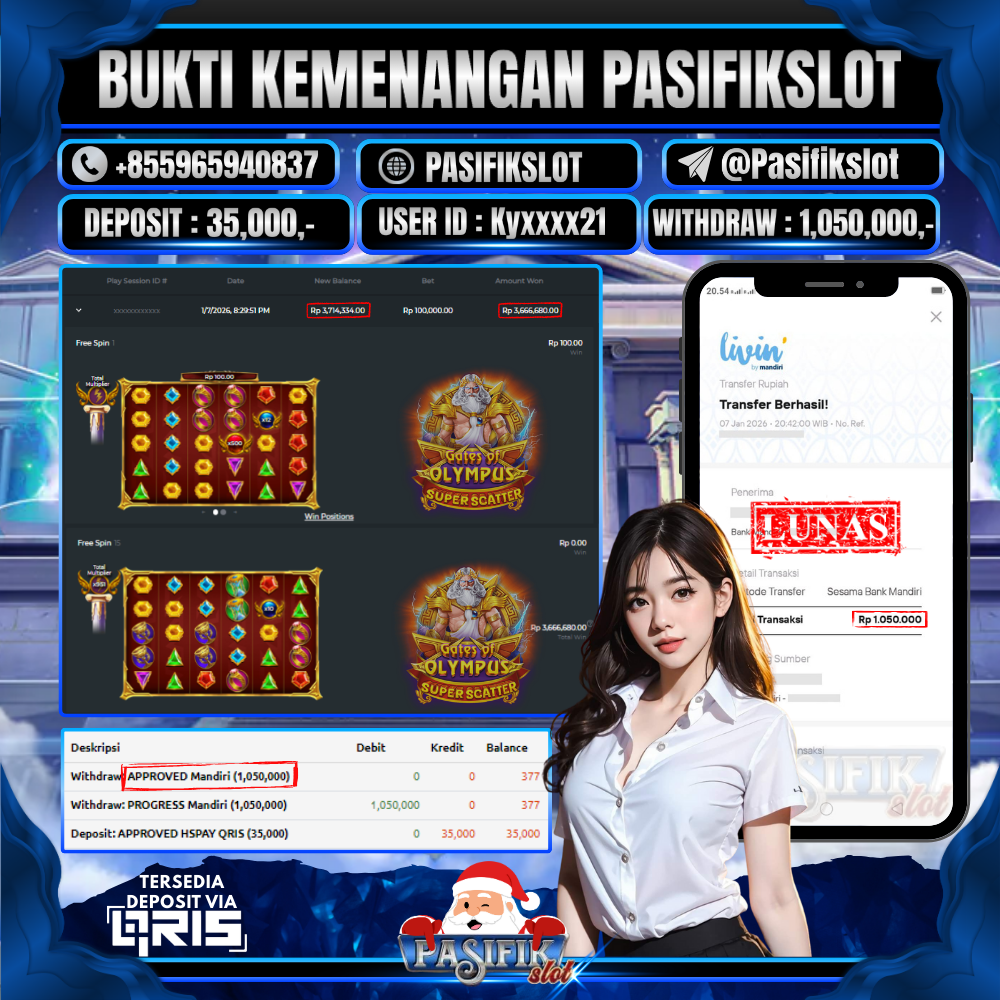 PASIFIKSLOT JACKPOT GATES OF OLYMPUS SUPER SCATTER. Rp.1,050,000,- LUNAS!