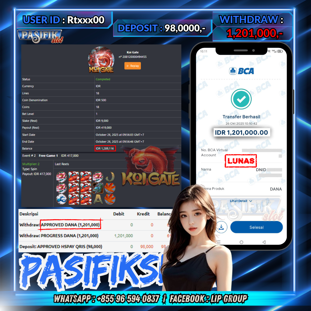 PASIFIKSLOT JACKPOT KOI GATE Rp.1,201,000,- LUNAS!