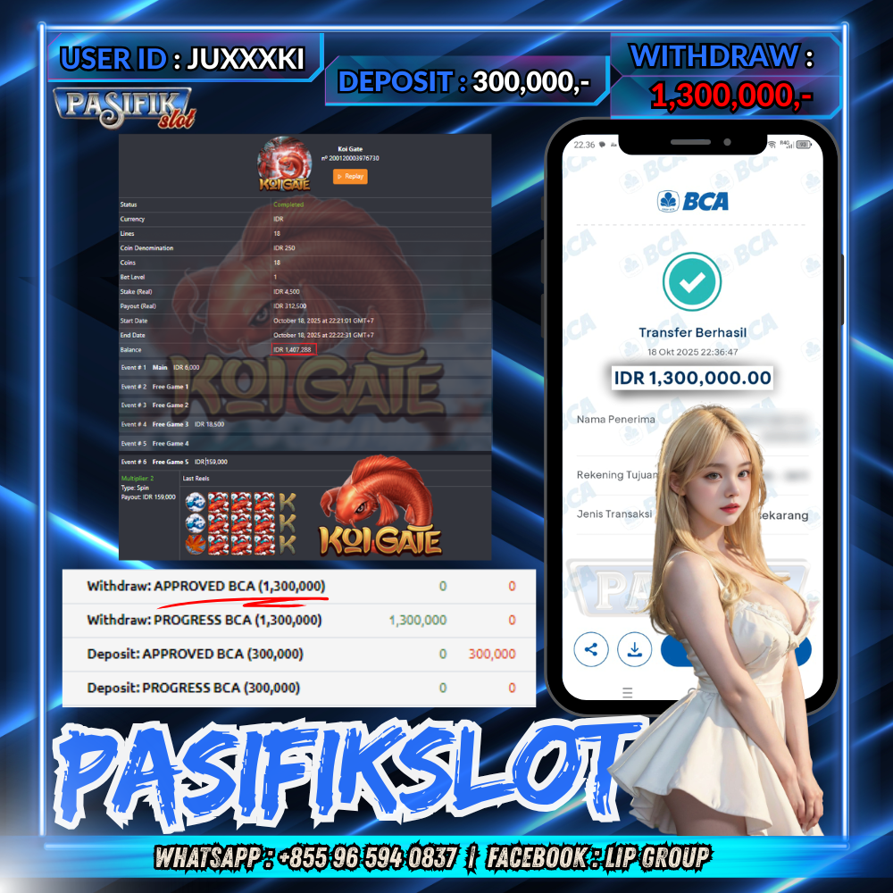 PASIFIKSLOT JACKPOT KOI GATE Rp.1,300,000,- LUNAS!