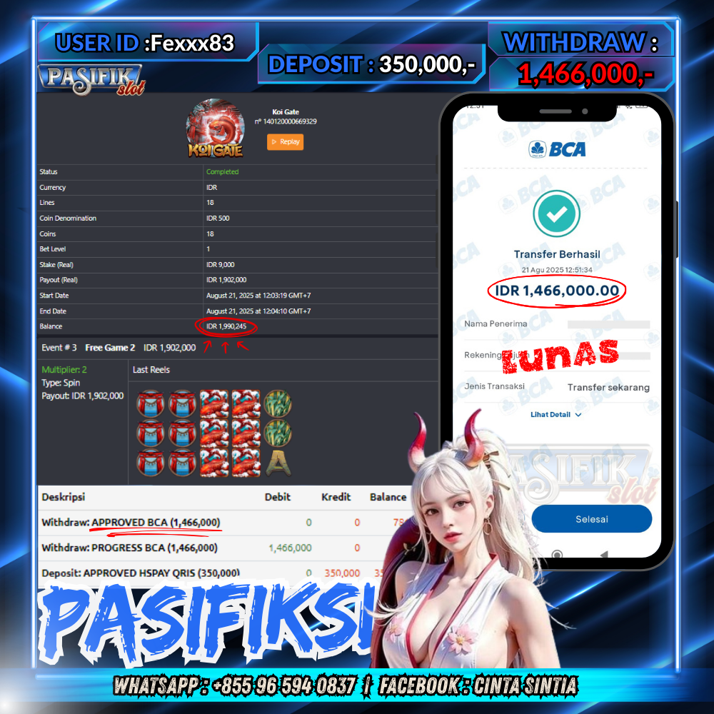 PASIFIKSLOT JACKPOT KOI GATE Rp.1,466,000,- LUNAS!