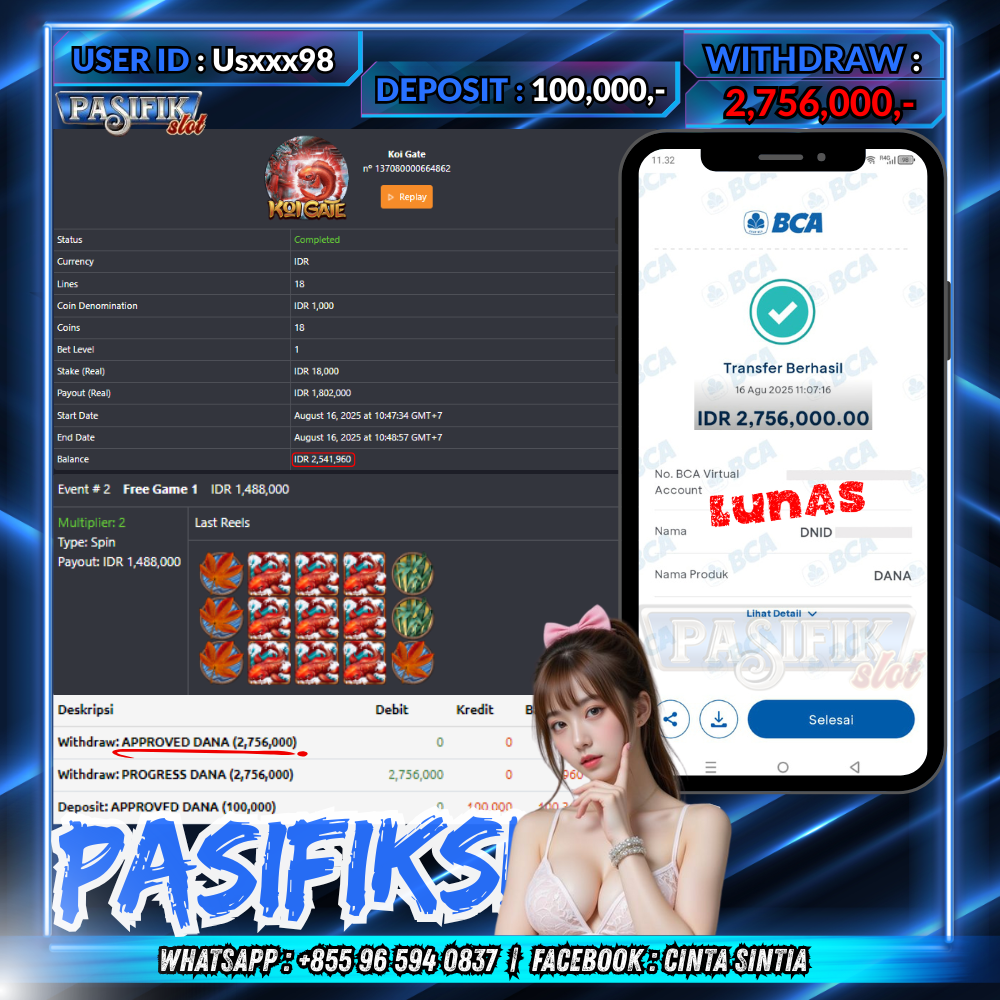PASIFIKSLOT JACKPOT KOI GATE Rp.2,756,000,- LUNAS!