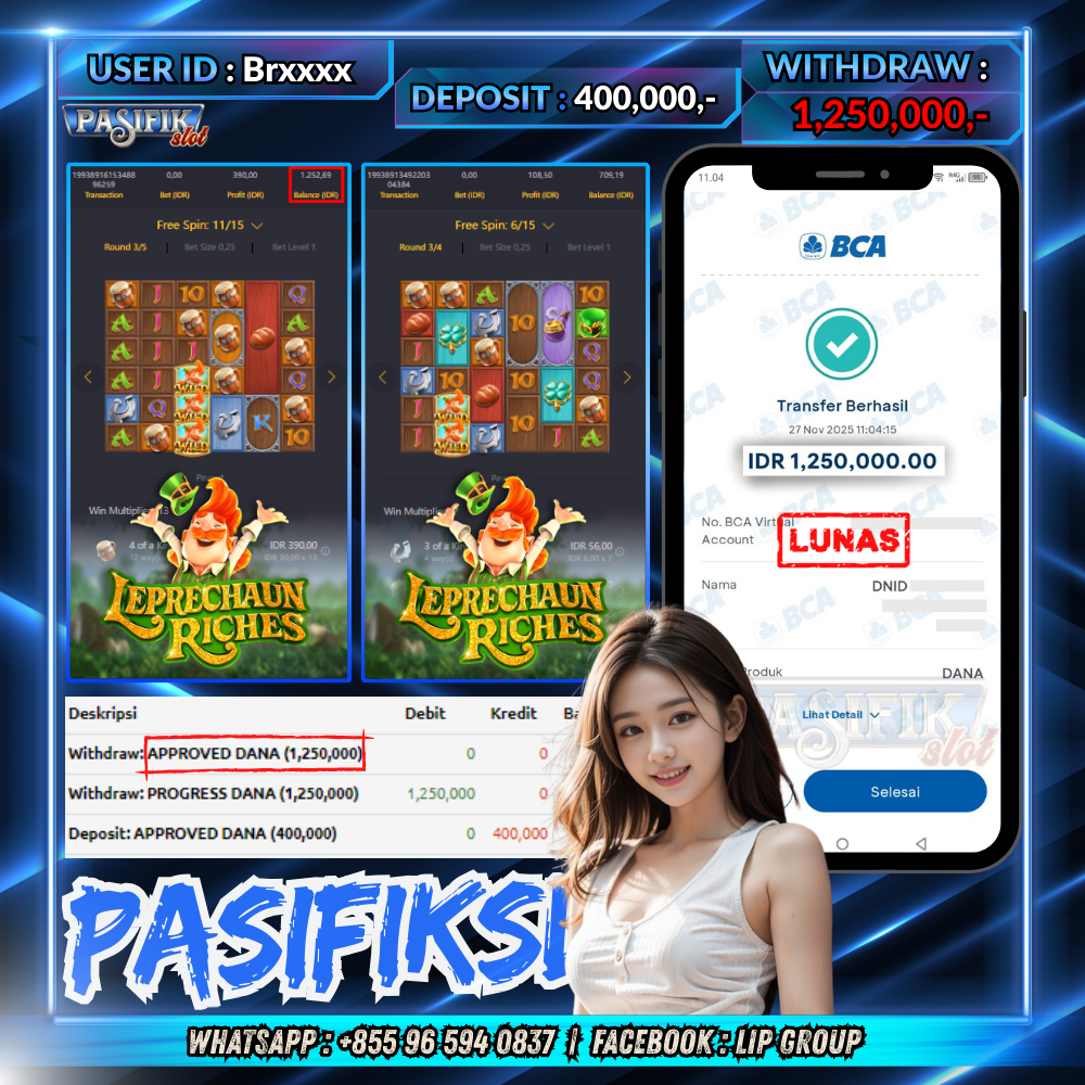 PASIFIKSLOT JACKPOT LEPRECHAUN RICHES Rp.1,250,000,- LUNAS!