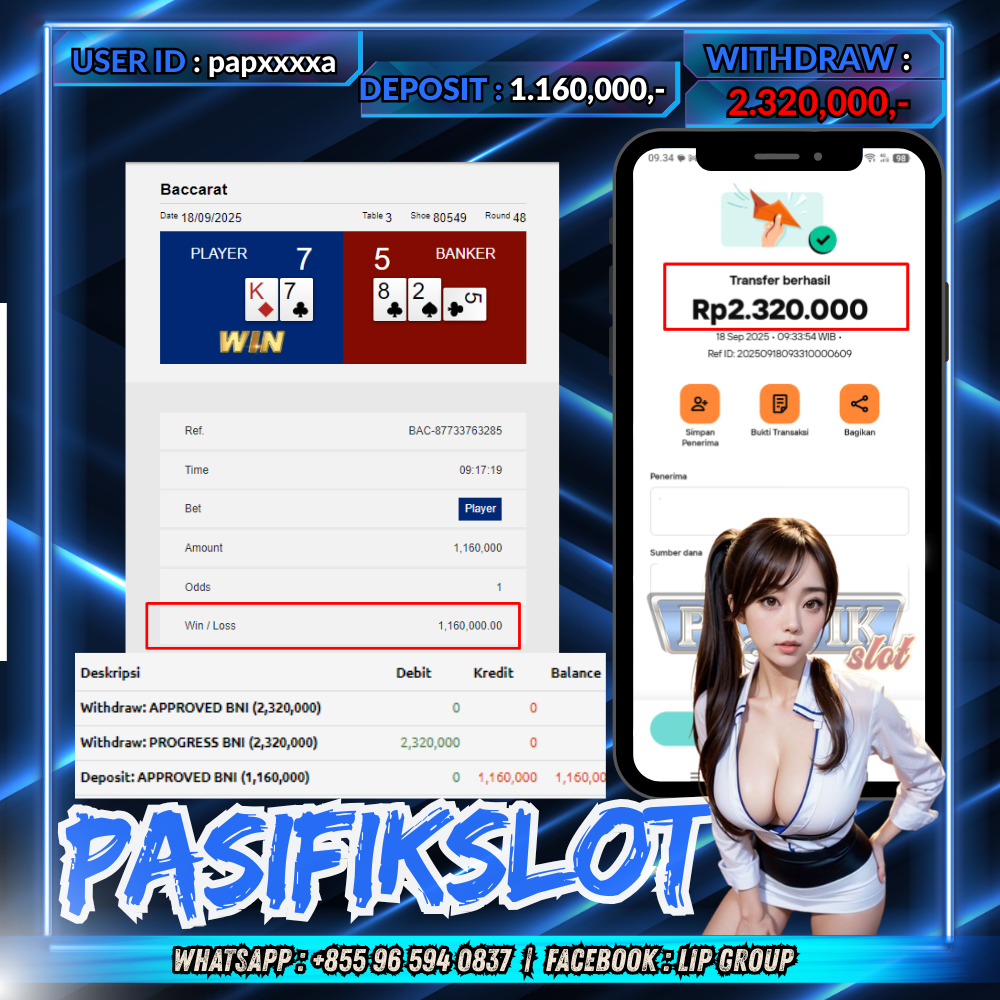 PASIFIKSLOT JACKPOT LIVE CASINO ( BACCARAT )Rp.2.320,000,- LUNAS!