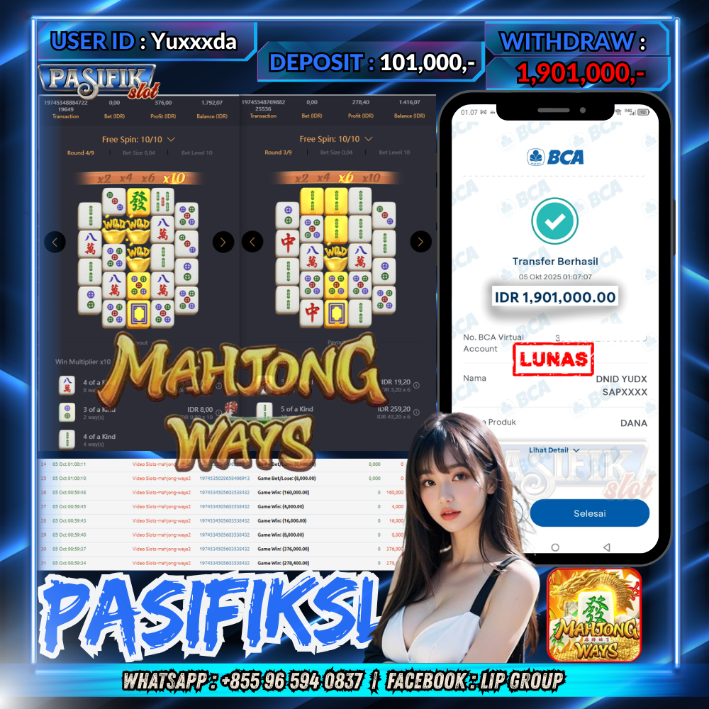 PASIFIKSLOT JACKPOT MAHJONG WAYS 2 Rp.1,901,000,- LUNAS!
