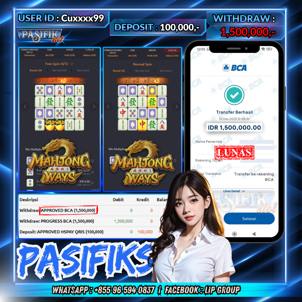 PASIFIKSLOT JACKPOT MAHJONG WAYS Rp.1,500,000,-LUNAS!