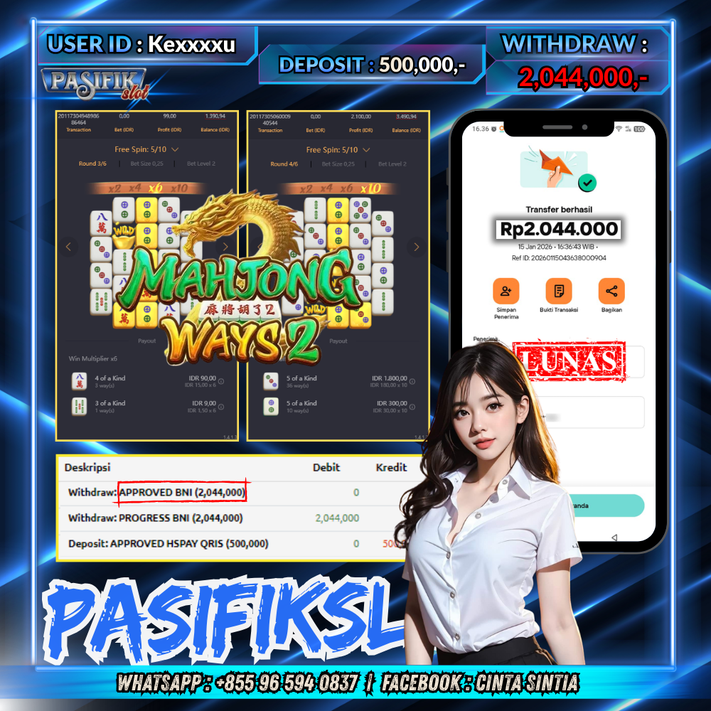 PASIFIKSLOT JACKPOT PG SOFT MAHJONG WAYS 2 Rp.2,044,000,- LUNAS!