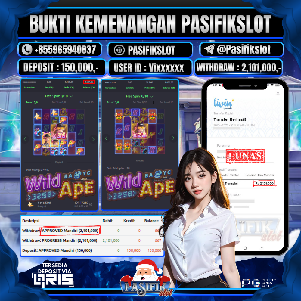 PASIFIKSLOT JACKPOT PG SOFT WILD APE Rp.2,101,000,-LUNAS!