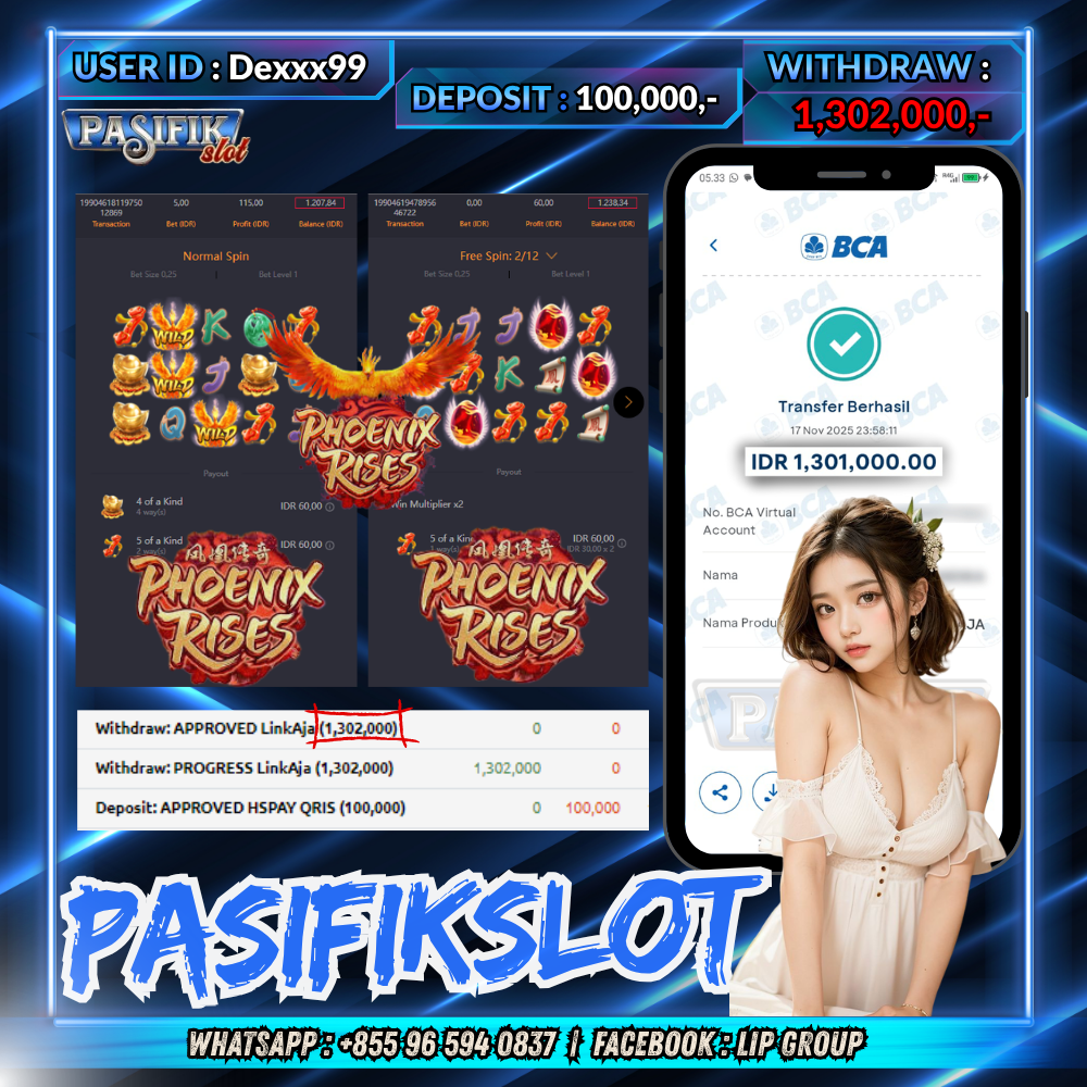 PASIFIKSLOT JACKPOT PHOENIX RISES Rp.1,302,000,- LUNAS!