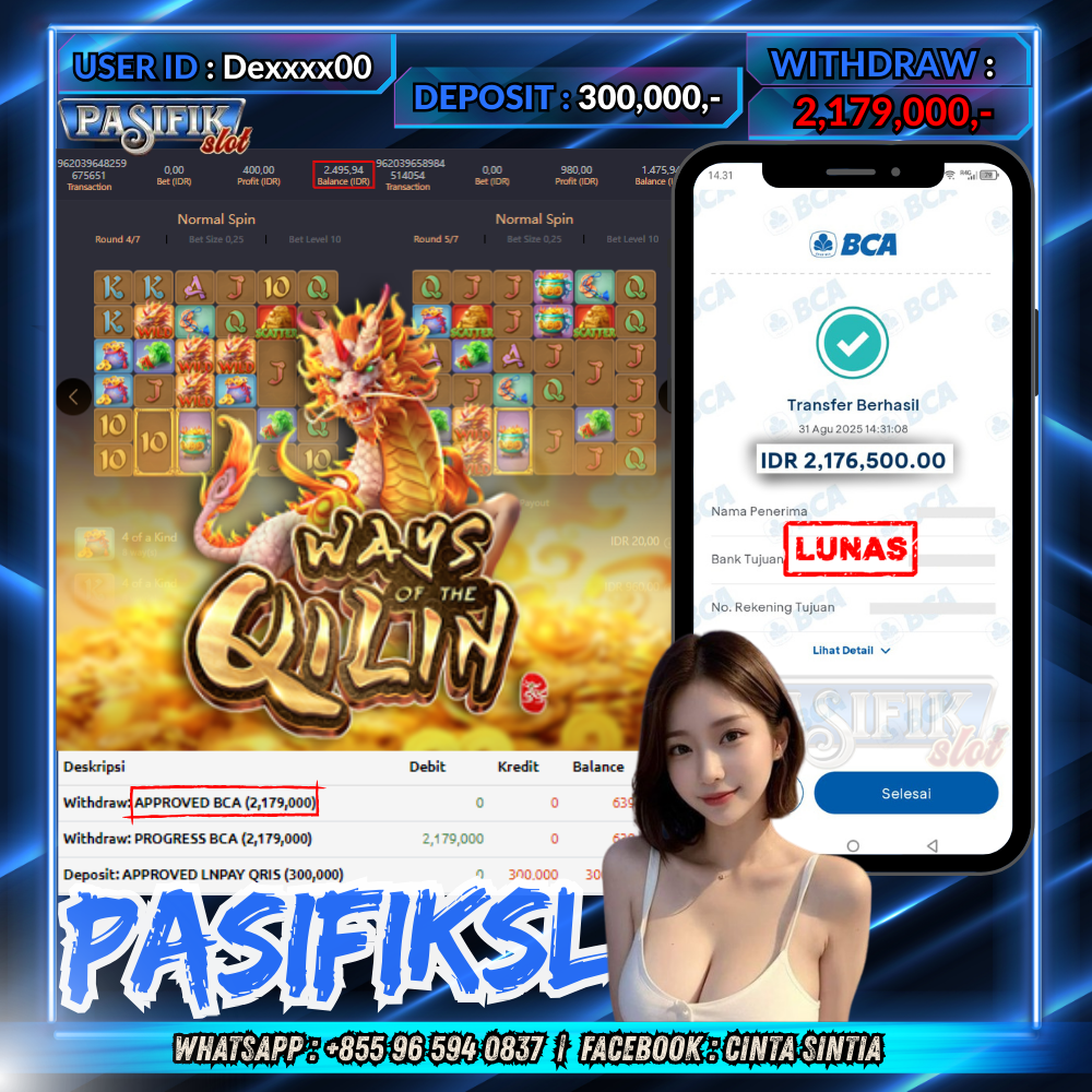 PASIFIKSLOT JACKPOT WAYS OF QILIN Rp.2,179,000,- LUNAS!