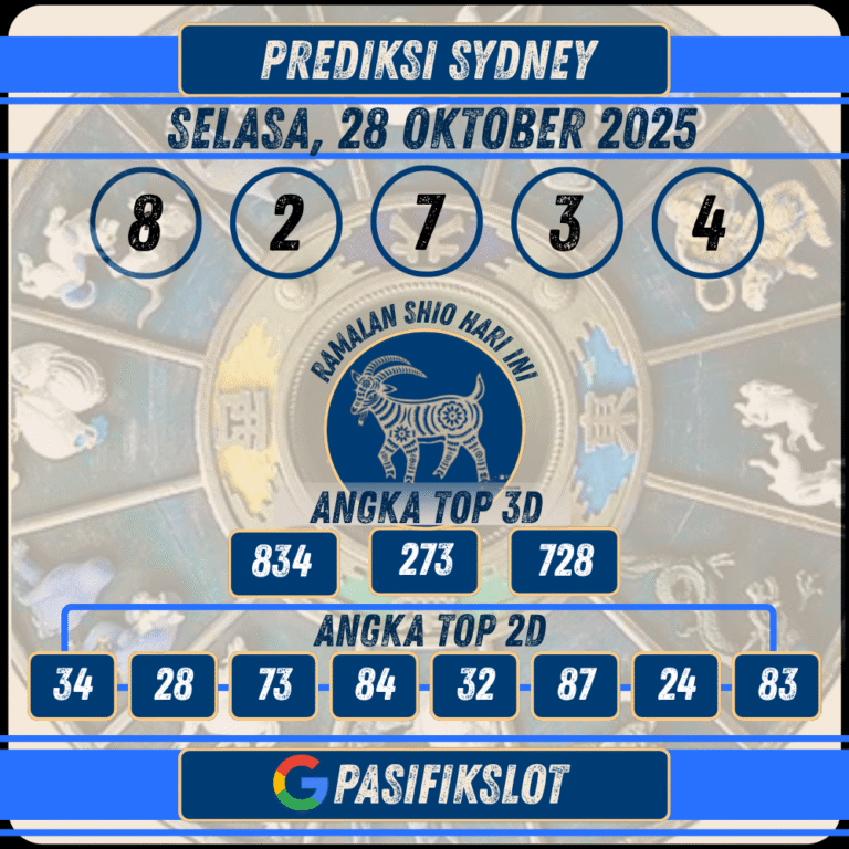 PASIFIKSLOT | Selamat datang di halaman prediksi togel sydneypools terbaru untuk tanggal 28 Oktober 2025. Kami di Pasifikslot selalu berusaha memberikan prediksi angka jitu yang akurat dan…