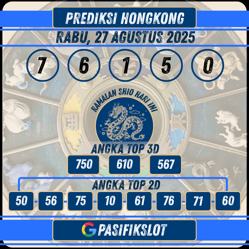 PASIFIKSLOT | Selamat datang di halaman prediksi togel Hongkongpools terbaru untuk tanggal 27 Agustus 2025. Kami di Pasifikslot selalu berusaha memberikan prediksi angka jitu yang akurat dan terpercaya untuk membantu Anda meraih kemenangan maksimal. Dengan analisis data keluaran sebelumnya dan pola angka, kami menyajikan angka-angka terbaik untuk Anda gunakan sebagai referensi taruhan.