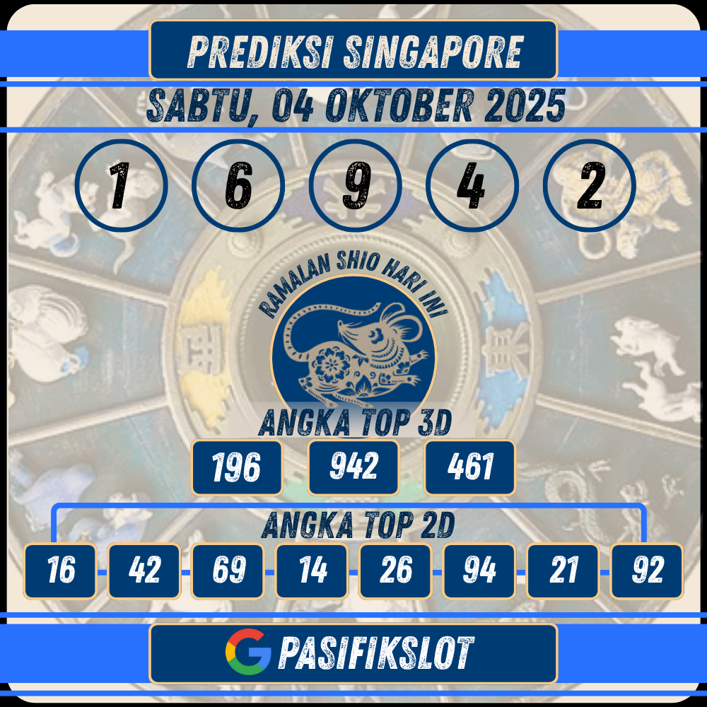 PASIFIKSLOT | Selamat datang di halaman prediksi togel Singaporepools terbaru untuk tanggal 04 Oktober 2025. Kami di Pasifikslot selalu berusaha memberikan prediksi angka jitu yang akurat dan terpercaya untuk membantu Anda meraih kemenangan maksimal. Dengan analisis data keluaran sebelumnya dan pola angka, kami menyajikan angka-angka terbaik untuk Anda gunakan sebagai referensi taruhan.