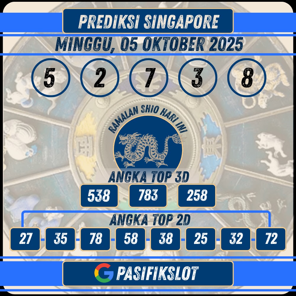 PASIFIKSLOT | Selamat datang di halaman prediksi togel Singaporepools terbaru untuk tanggal 05 Oktober 2025. Kami di Pasifikslot selalu berusaha memberikan prediksi angka jitu yang akurat dan terpercaya untuk membantu Anda meraih kemenangan maksimal. Dengan analisis data keluaran sebelumnya dan pola angka, kami menyajikan angka-angka terbaik untuk Anda gunakan sebagai referensi taruhan.