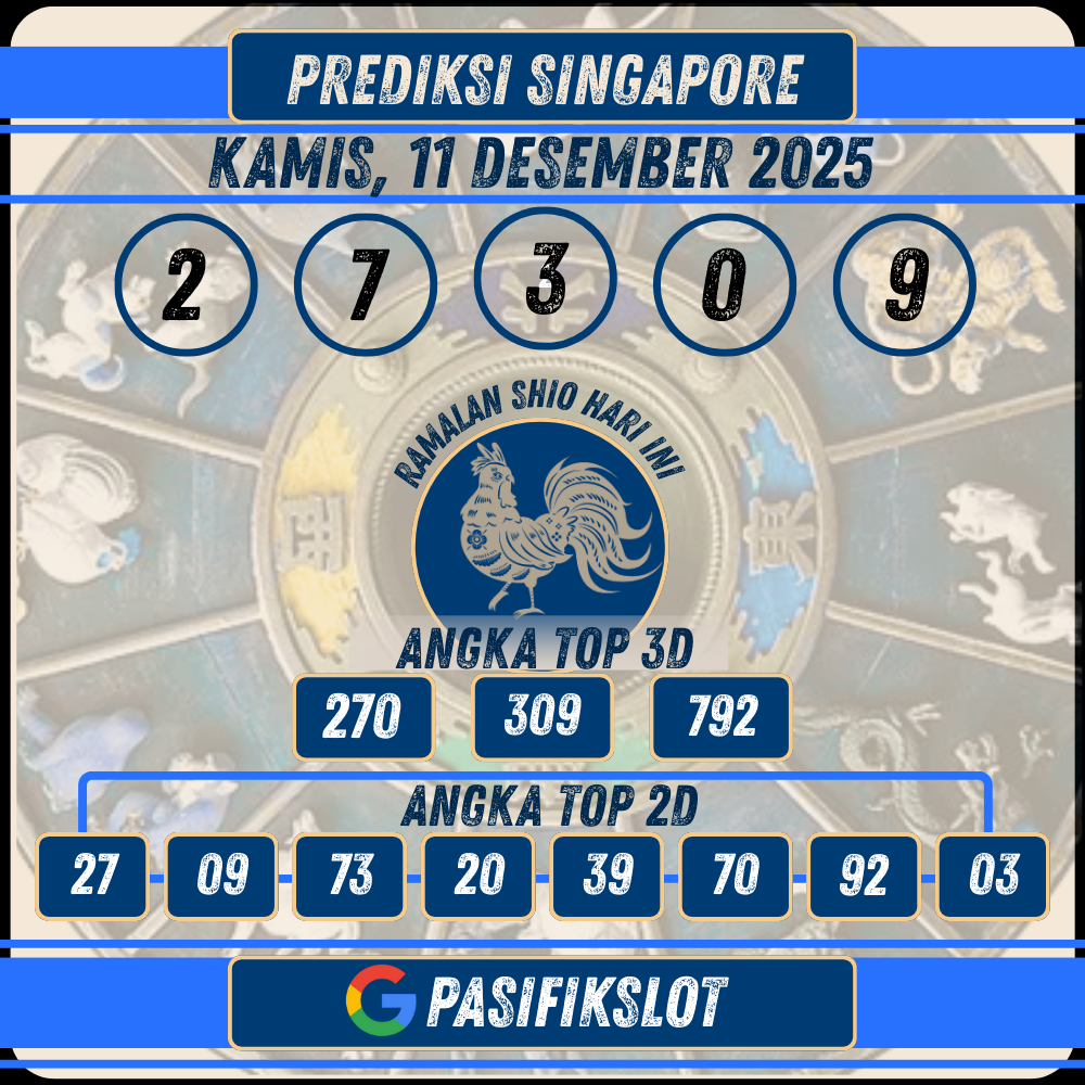 PASIFIKSLOT | Selamat datang di halaman prediksi togel Singaporepools terbaru untuk tanggal 11 Desember 2025. Kami di Pasifikslot selalu berusaha memberikan prediksi angka jitu yang akurat dan terpercaya untuk membantu Anda meraih kemenangan maksimal. Dengan analisis data keluaran sebelumnya dan pola angka, kami menyajikan angka-angka terbaik untuk Anda gunakan sebagai referensi taruhan.