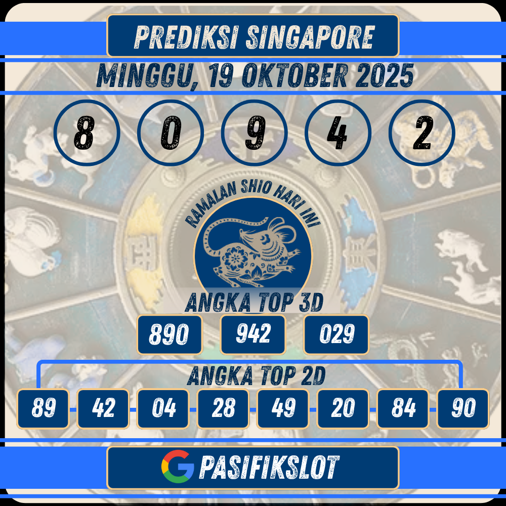 PASIFIKSLOT | Selamat datang di halaman prediksi togel Singaporepools terbaru untuk tanggal 19 Oktober 2025. Kami di Pasifikslot selalu berusaha memberikan prediksi angka jitu yang akurat dan terpercaya untuk membantu Anda meraih kemenangan maksimal. Dengan analisis data keluaran sebelumnya dan pola angka, kami menyajikan angka-angka terbaik untuk Anda gunakan sebagai referensi taruhan.