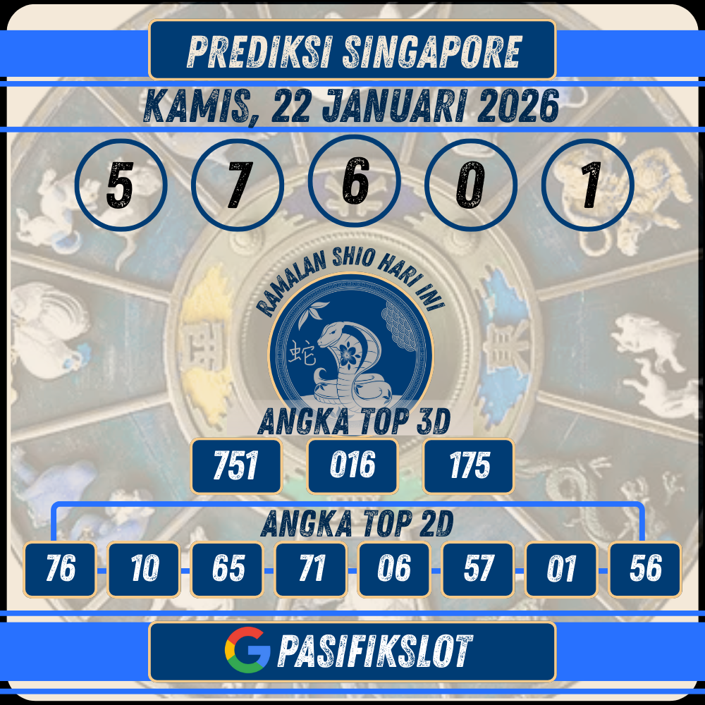 PASIFIKSLOT | Selamat datang di halaman prediksi togel Singaporepools terbaru untuk tanggal 22 Januari 2026. Kami di Pasifikslot selalu berusaha memberikan prediksi angka jitu yang akurat dan terpercaya untuk membantu Anda meraih kemenangan maksimal. Dengan analisis data keluaran sebelumnya dan pola angka, kami menyajikan angka-angka terbaik untuk Anda gunakan sebagai referensi taruhan.