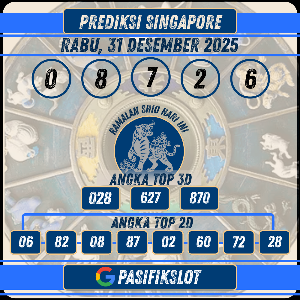 PASIFIKSLOT | Selamat datang di halaman prediksi togel Singaporepools terbaru untuk tanggal 31 Desember 2025. Kami di Pasifikslot selalu berusaha memberikan prediksi angka jitu yang akurat dan terpercaya untuk membantu Anda meraih kemenangan maksimal. Dengan analisis data keluaran sebelumnya dan pola angka, kami menyajikan angka-angka terbaik untuk Anda gunakan sebagai referensi taruhan.