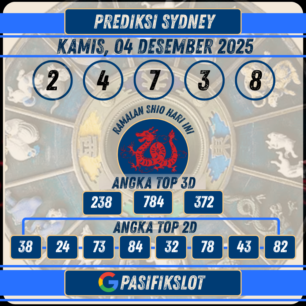 PASIFIKSLOT | Selamat datang di halaman prediksi togel sydneypools terbaru untuk tanggal 04 Desember 2025. Kami di Pasifikslot selalu berusaha memberikan prediksi angka jitu yang akurat dan terpercaya untuk membantu Anda meraih kemenangan maksimal. Dengan analisis data keluaran sebelumnya dan pola angka, kami menyajikan angka-angka terbaik untuk Anda gunakan sebagai referensi taruhan.