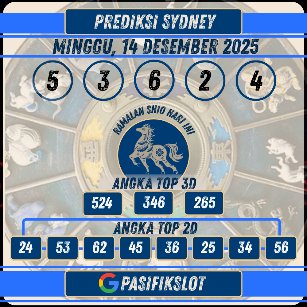 PASIFIKSLOT | Selamat datang di halaman prediksi togel sydneypools terbaru untuk tanggal 14 Desember 2025. Kami di Pasifikslot selalu berusaha memberikan prediksi angka jitu yang akurat dan terpercaya untuk membantu Anda meraih kemenangan maksimal. Dengan analisis data keluaran sebelumnya dan pola angka, kami menyajikan angka-angka terbaik untuk Anda gunakan sebagai referensi taruhan.