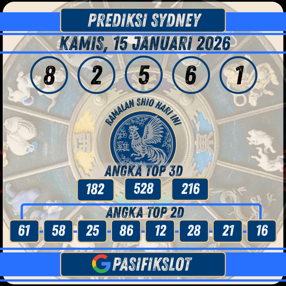 PASIFIKSLOT | Selamat datang di halaman prediksi togel sydneypools terbaru untuk tanggal 15 Januari 2026. Kami di Pasifikslot selalu berusaha memberikan prediksi angka jitu yang akurat dan terpercaya untuk membantu Anda meraih kemenangan maksimal. Dengan analisis data keluaran sebelumnya dan pola angka, kami menyajikan angka-angka terbaik untuk Anda gunakan sebagai referensi taruhan.