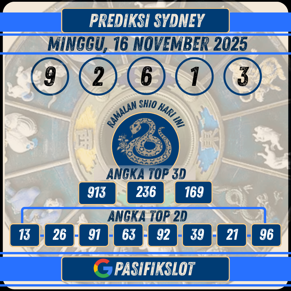 PASIFIKSLOT | Selamat datang di halaman prediksi togel sydneypools terbaru untuk tanggal 16 November 2025. Kami di Pasifikslot selalu berusaha memberikan prediksi angka jitu yang akurat dan terpercaya untuk membantu Anda meraih kemenangan maksimal. Dengan analisis data keluaran sebelumnya dan pola angka, kami menyajikan angka-angka terbaik untuk Anda gunakan sebagai referensi taruhan.