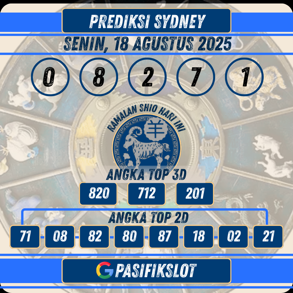 PASIFIKSLOT | Selamat datang di halaman prediksi togel sydneypools terbaru untuk tanggal 18 Agustus 2025. Kami di Pasifikslot selalu berusaha memberikan prediksi angka jitu yang akurat dan terpercaya untuk membantu Anda meraih kemenangan maksimal. Dengan analisis data keluaran sebelumnya dan pola angka, kami menyajikan angka-angka terbaik untuk Anda gunakan sebagai referensi taruhan.