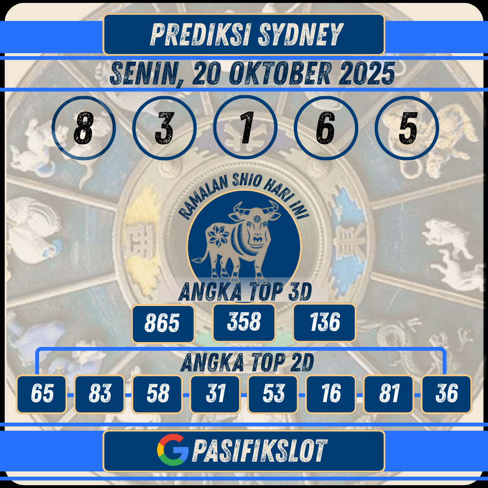PASIFIKSLOT | Selamat datang di halaman prediksi togel sydneypools terbaru untuk tanggal 20 Oktober 2025. Kami di Pasifikslot selalu berusaha memberikan prediksi angka jitu yang akurat dan terpercaya untuk membantu Anda meraih kemenangan maksimal. Dengan analisis data keluaran sebelumnya dan pola angka, kami menyajikan angka-angka terbaik untuk Anda gunakan sebagai referensi taruhan.