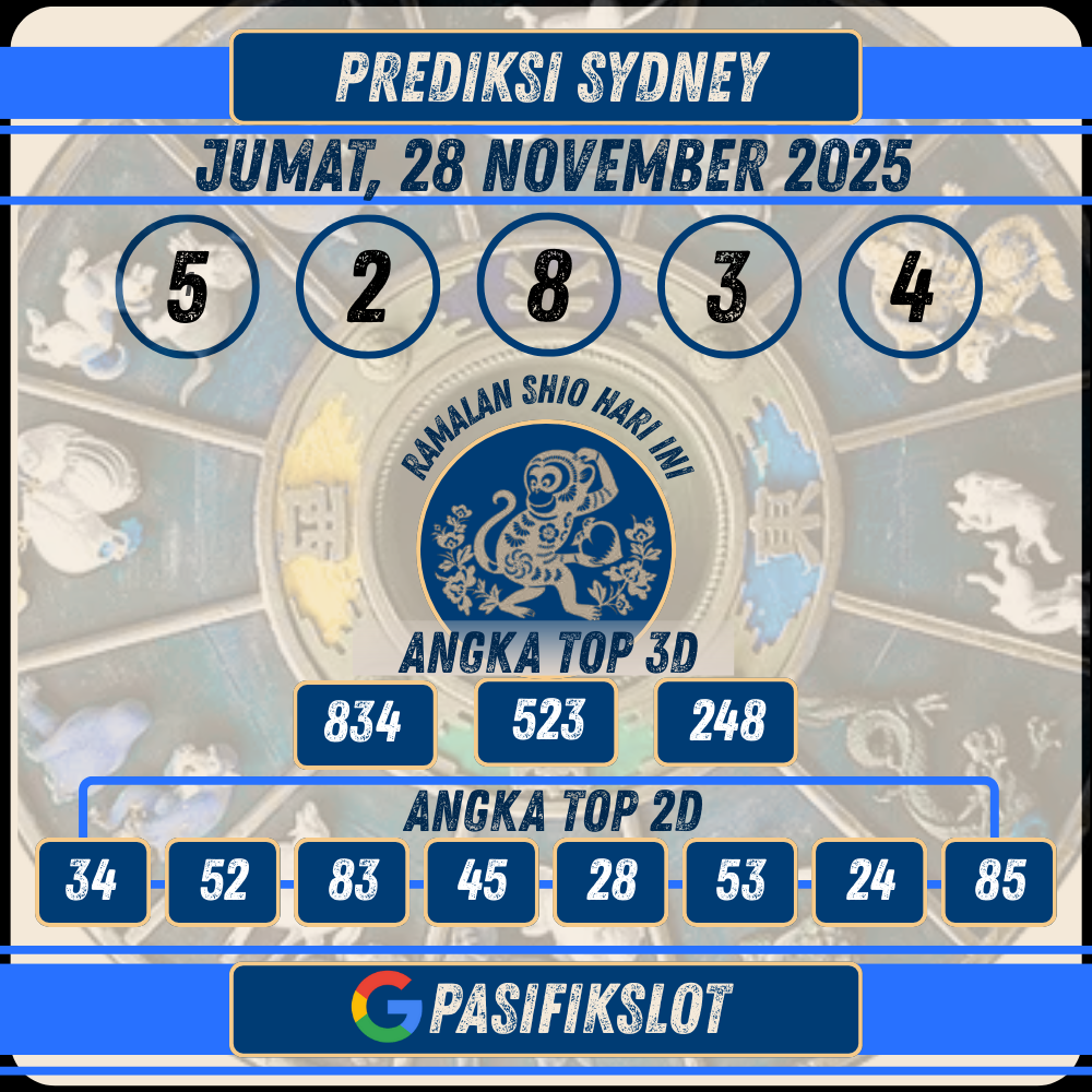 PASIFIKSLOT | Selamat datang di halaman prediksi togel sydneypools terbaru untuk tanggal 28 November 2025. Kami di Pasifikslot selalu berusaha memberikan prediksi angka jitu yang akurat dan terpercaya untuk membantu Anda meraih kemenangan maksimal. Dengan analisis data keluaran sebelumnya dan pola angka, kami menyajikan angka-angka terbaik untuk Anda gunakan sebagai referensi taruhan.
