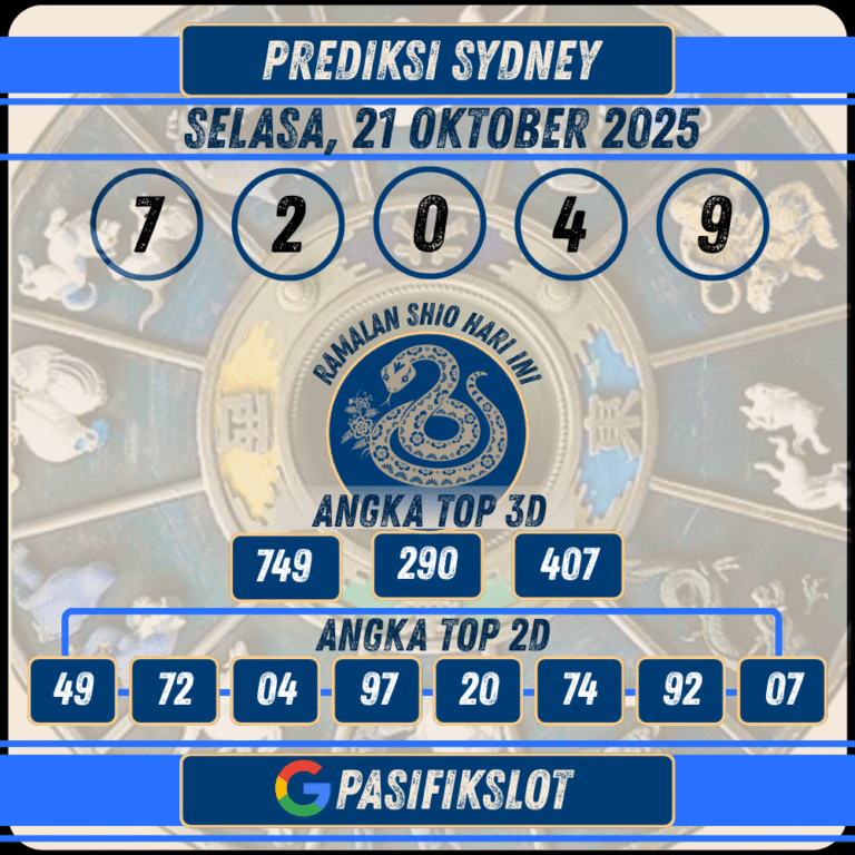 PASIFIKSLOT | Selamat datang di halaman prediksi togel sydneypools terbaru untuk tanggal 21 Oktober 2025. Kami di Pasifikslot selalu berusaha memberikan prediksi angka jitu yang akurat dan terpercaya untuk membantu…
