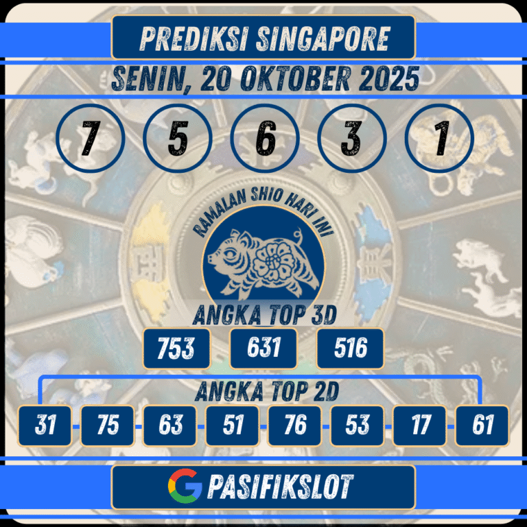 PASIFIKSLOT | Selamat datang di halaman prediksi togel Singaporepools terbaru untuk tanggal 20 Oktober 2025. Kami di Pasifikslot selalu berusaha memberikan prediksi angka jitu yang akurat dan terpercaya untuk membantu…